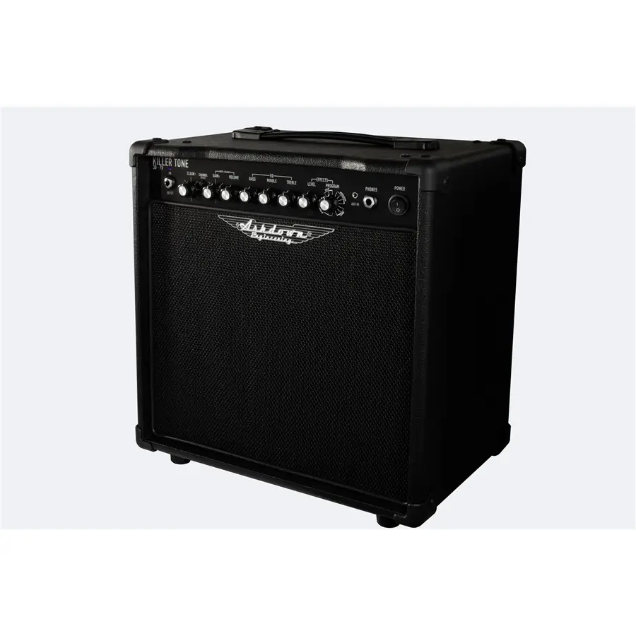 Amplificatore combo per chitarra da 30 watt della nuova linea Killer Tone di casa Ashdown. Questo amplificatore transistor con una potenza di 30 watt, è ideale sia per studiare, grazie anche all’uscita cuffie e all’AUX IN, sia per la sala prove. L’unità di effetti digitali permette di scegliere fino a 16 effetti.
