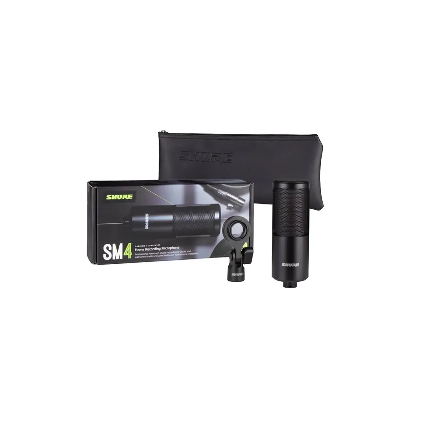 Lo Shure SM4 è un microfono a condensatore per gli Home e Project Recording Studio, dotato di un pattern di ripresa cardioide. Prodotto interamente in metallo, SM4 adotta particolari tecnologie costruttive: una capsula da 1” a doppio diaframma, la schermatura dalle interferenze e un filtro anti-pop integrato. L’elevato SPL supportato (fino a 140dB) e la risposta in frequenza dai 20Hz ai 20kHz rendono questo microfono adatto nella ripresa vocale, nella registrazione degli strumenti acustici e nella microfonazione dei cabinet.