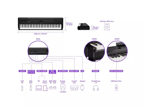 Yamaha costruisce pianoforti acustici dal 1900 e da decenni l’azienda è all’avanguardia nella tecnologia digitale. Sotto il cofano del P-525 si trovano tecnologie audio digitali proprietarie come Virtual Resonance Modeling (VRM), che modella meticolosamente il numero infinito di fattori che creano il suono di un pianoforte a coda da concerto per conferire un’espressione vivida e riccamente variata alla tua musica. Dal suono imponente del pianoforte a coda da concerto CFX da 9 piedi, fiore all’occhiello di Yamaha, alla maestosità maestosa del venerato Bösendorfer Imperial da 8 ottave austriaco, entusiasmerai la ricchezza sonora dei migliori pianoforti acustici del mondo, oltre a una selezione di altri eccellenti pianoforti voci strumentali, inclusi pianoforti elettrici, organi, vibrafono e altro ancora.