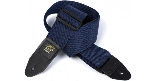Tracolla per chitarra, in tessuto Denim, con terminali in pelle artificiale e fibbie in metallo. 5 cm di larghezza, lunghezza minima 82 e massima 148 (regolabile). Colore blu.