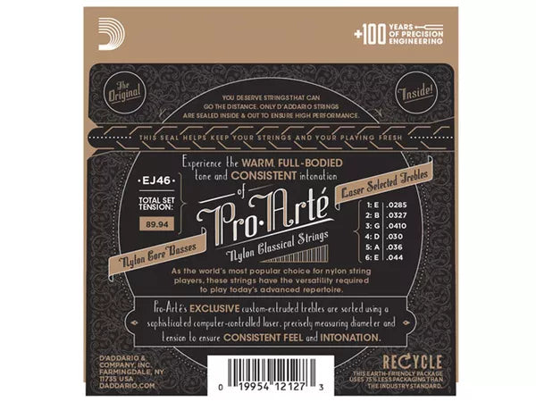 | Le corde per chitarra classica più famose al mondo sono le corde di altà qualità D’Addario Pro-Artè. Tutte le corde alte Pro-Artè sono analizzate da una sofisticata macchina laser controllata da computer che esegue misurazioni di diametro e tensione, assicurando corde precise in ogni set. Le Pro-Artè basse sono avvolte con rame placcato in argento su un nucleo di Nylon multi-filamento per un suono coerente e caldo. |
