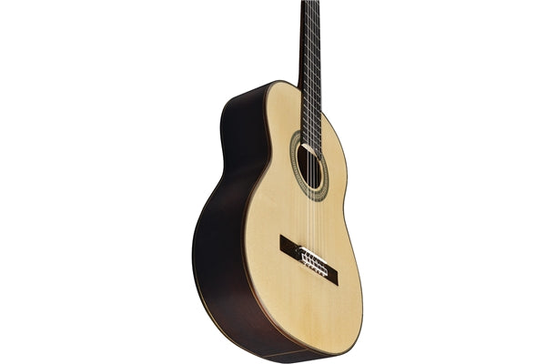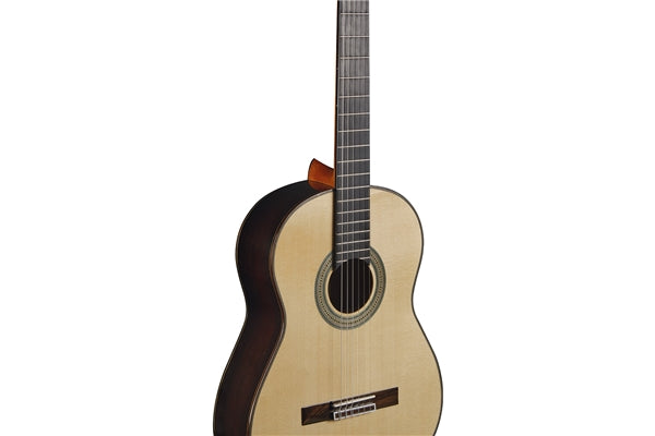 La serie Vibra propone chitarre classiche rivolte ad allievi e docenti impegnati in corsi accademici o di Conservatorio. Sono chitarre classiche pensate e progettate dopo anni di studi sul settore e coinvolgimento di vari professionisti nell’ambito classico. Il risultato è una serie composta da 7 modelli che partono dalla scala ridotta per i bambini fino a raggiungere esemplari da concerto. La Vibra 800 rappresenta il culmine di questo progetto. Presenta top in Abete Italiano massello 1a selezione, fasce e fondo in Palissandro Indiano massello, manico in Mogano rinforzato e tastiera in Ebano. La particolarità di questa chitarra è l’incatenatura interna in stile Lattice Bracing.