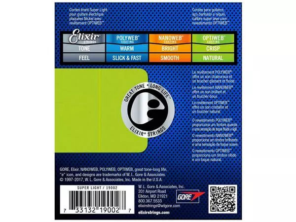 Grazie alla tecnologia Optiweb, Elixir offre corde per chitarra elettrica più sensibili e naturali. Destinate ai chitarristi che vogliono la stessa sensazione ed il suono di una corda non rivestita, le corde per chitarra elettrica Optiweb sono progettate appositamente per consentire alla corda di vibrare liberamente. Inoltre offrono una presa precisa sulle corde, che i chitarristi apprezzano per il bending e le tecniche di vibrato. |