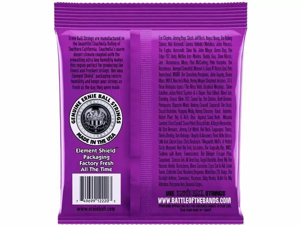 Le corde per chitarra elettrica Ernie Ball Power Slinky sono una combinazione perfetta per coloro che amano i ritmi robusti per il rock and roll ed il blues. Le Power Slinky sono state a lungo preferite da Slash, Metallica e Kenny Wayne Shepherd a causa della combinazione di un calibro più spesso che fornisce un suono leggermente più potente. Le corde piatte sono fatte con un acciaio temprato stagnato al carbonio che produce un suono ben bilanciato. |