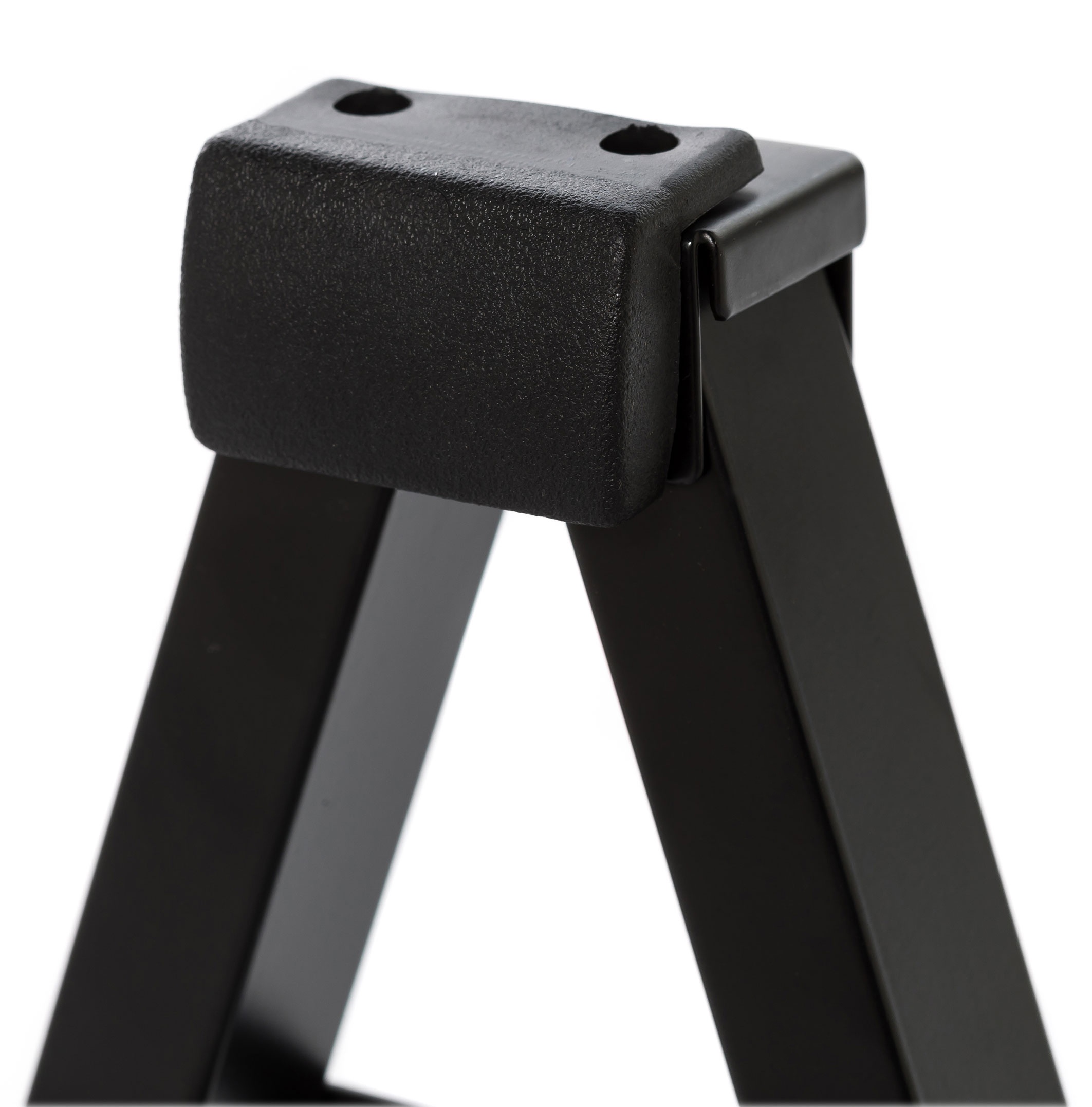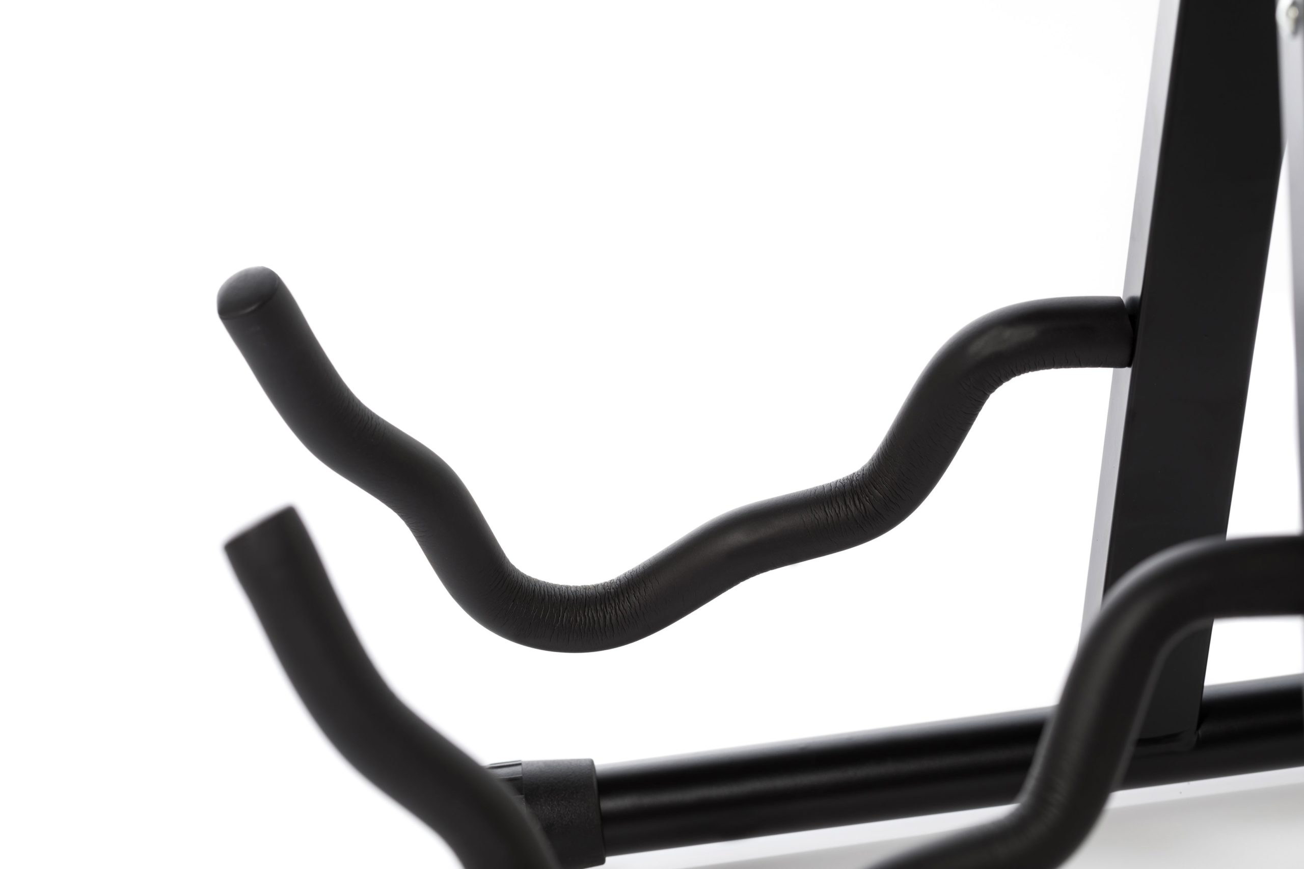 Supporto universale per chitarra con calotta in gomma naturale e bracci di appoggio rivestiti in EVA. Blocco di sicurezza dell’apertura.